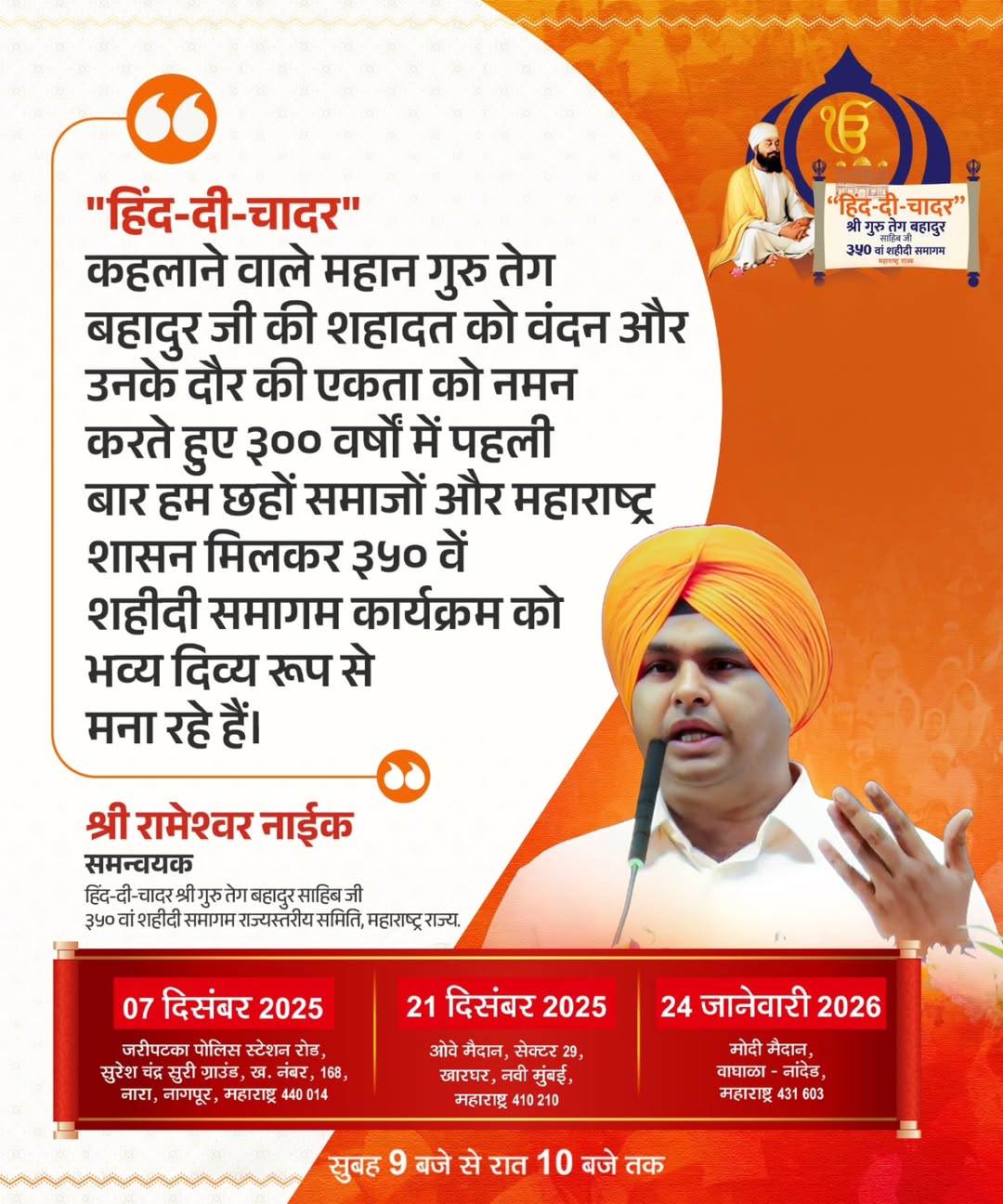 श्री गुरु तेग बहादुर साहिब जी शहीदी ३५० वां शहीदी समागम